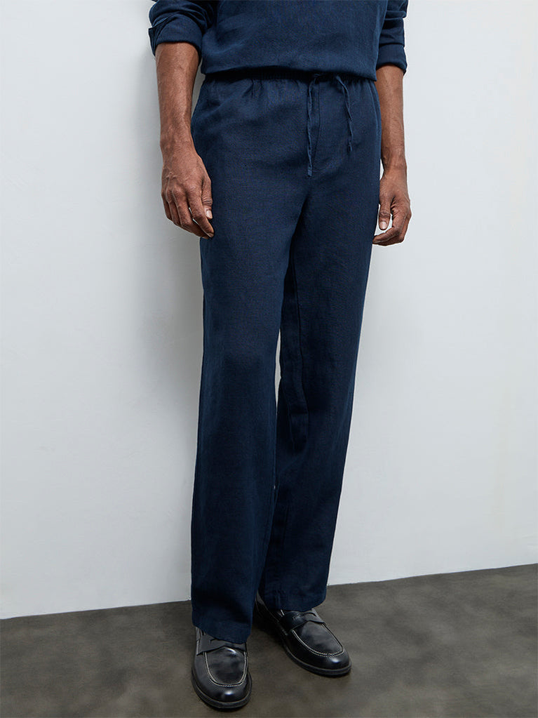 Ascot Indigo Relaxed-Fit Mid-Rise Linen Chinos