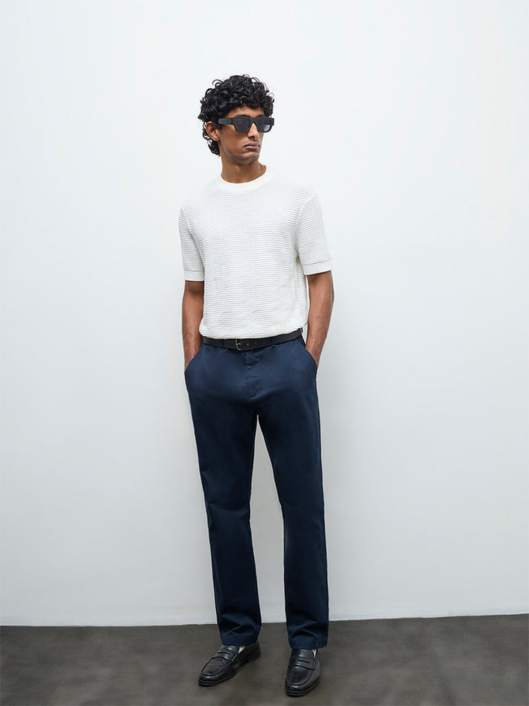 Ascot White Textured Relaxed-Fit Cotton T-Shirt