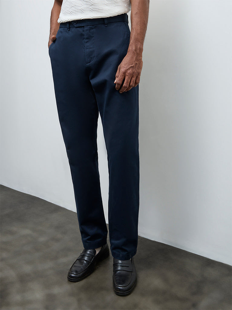 Ascot Navy Relaxed-Fit Mid-Rise Cotton Trousers