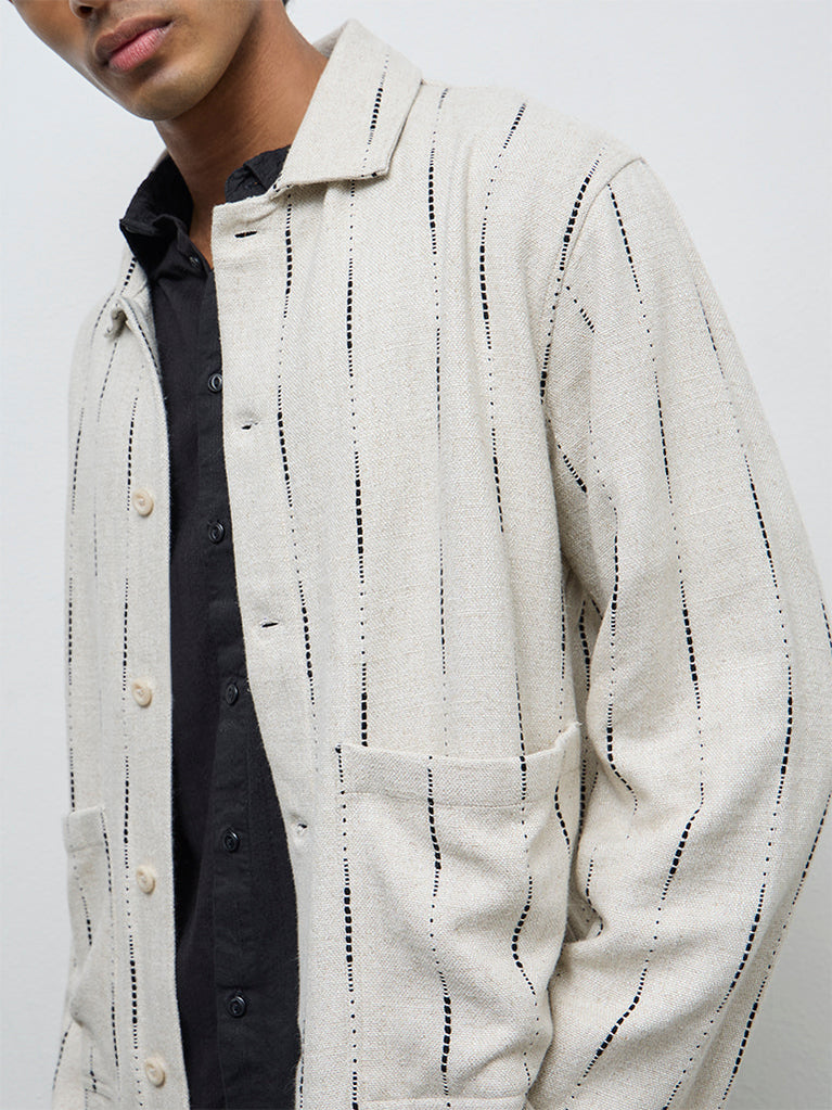 ETA Light Beige Printed Relaxed-Fit Cotton Jacket