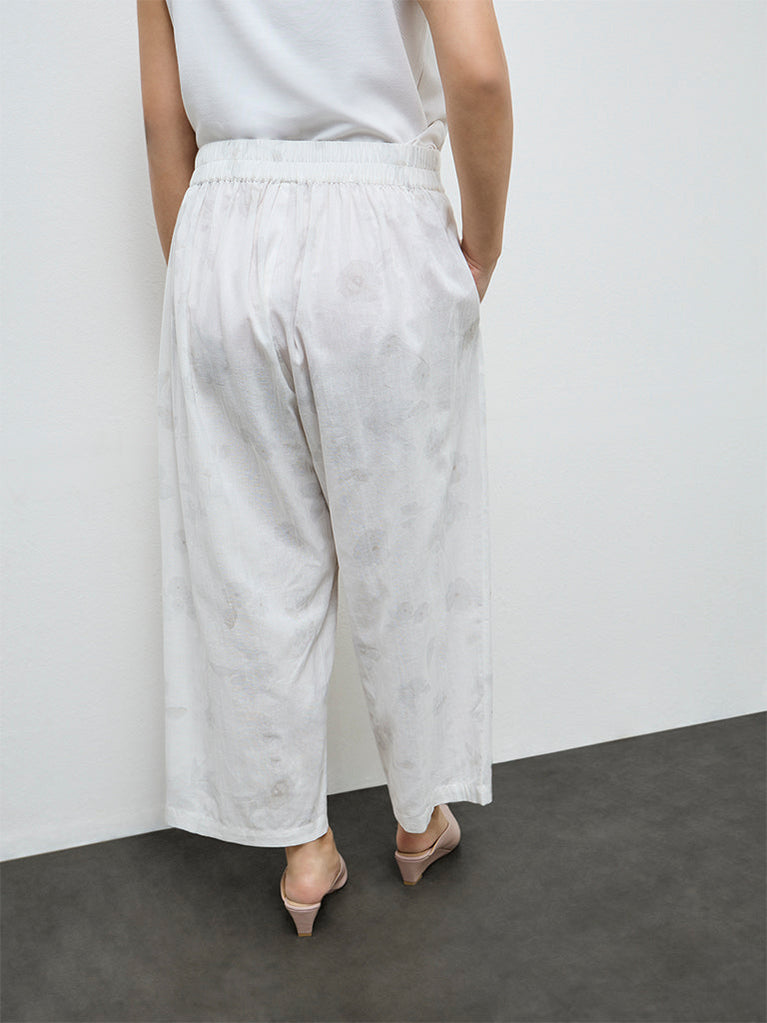 These white ethnic pants from Diza feature soft floral prints as a key part of the look. Spun from an ultra-soft fabric, they feel gentle and comfortable through extended wear. An elasticated waist offers a flexible fit, while side pockets add everyday practicality.
