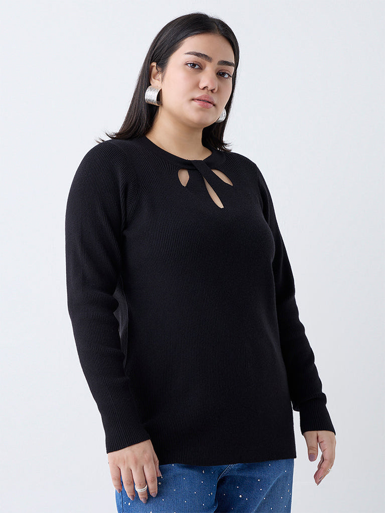 Gia launches this black sweater with a fashion-forward cut-out design that adds striking appeal. The ribbed knit fabric ensures stretch and comfort, while the round neck and full sleeves keep the profile sleek and wearable.