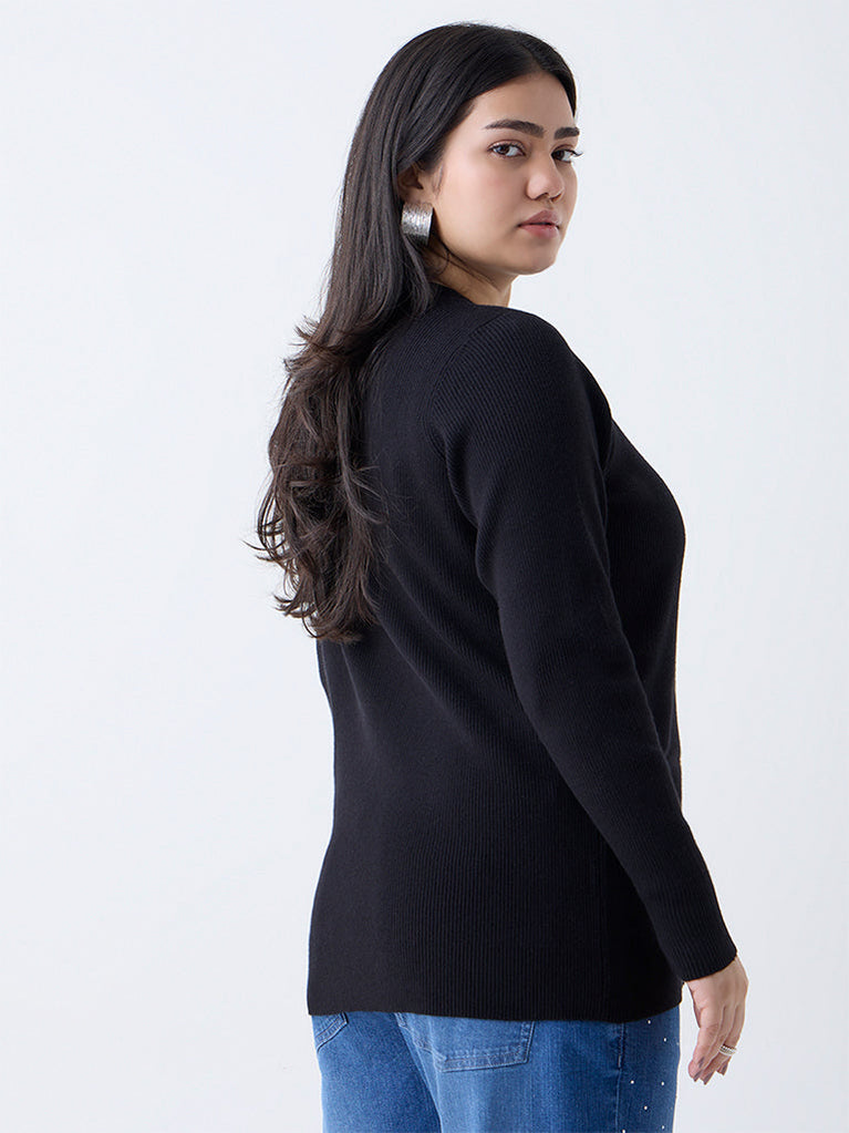 Gia Black Ribbed-Textured Sweater