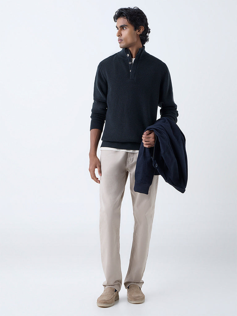 Enhance your winter layering with this emerald green sweater from Ascot. Spun from a textured knit, it features a high neck with zip-and-button closure and full sleeves, all shaped in a relaxed fit. A versatile essential, it brings warmth and understated polish to modern wardrobes.
