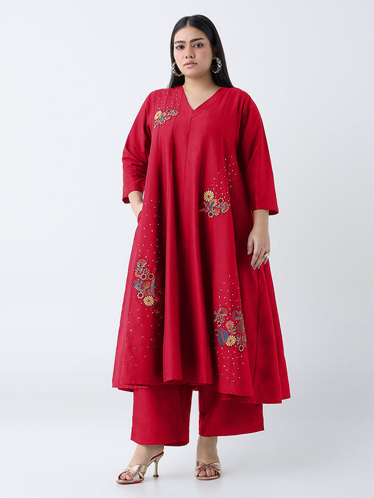 Diza Red Floral Embroidered Anarkali Kurta