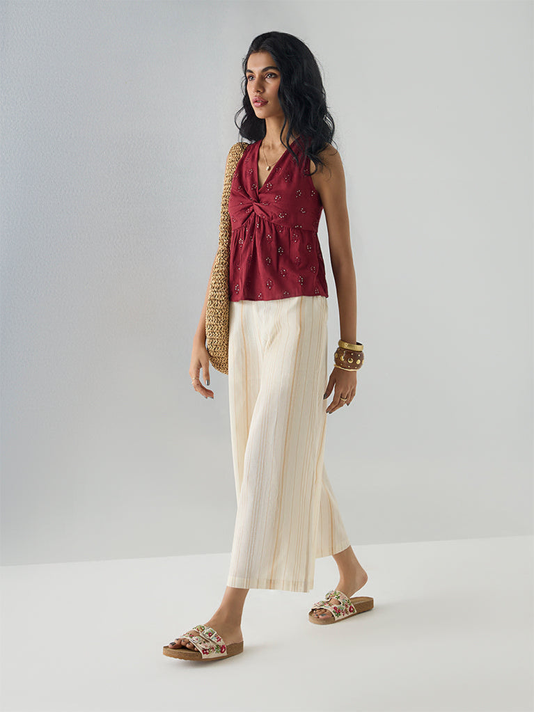 Bombay Paisley Light Beige Striped Cotton-Blend Palazzos