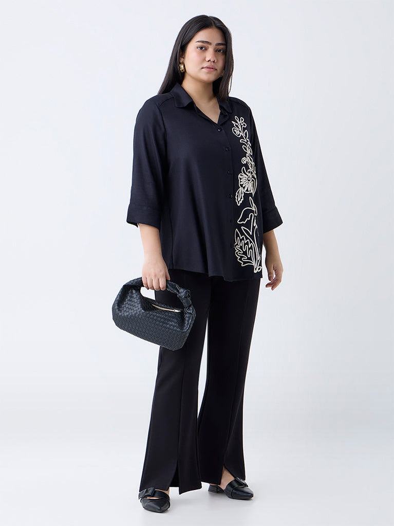 Gia Black Floral Embroidered Shirt