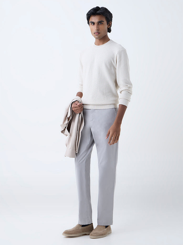 Ascot Grey Knit-Textured Relaxed-Fit Cotton-Blend Sweater