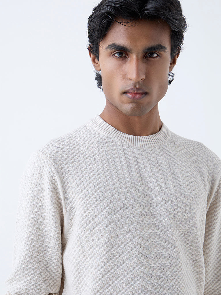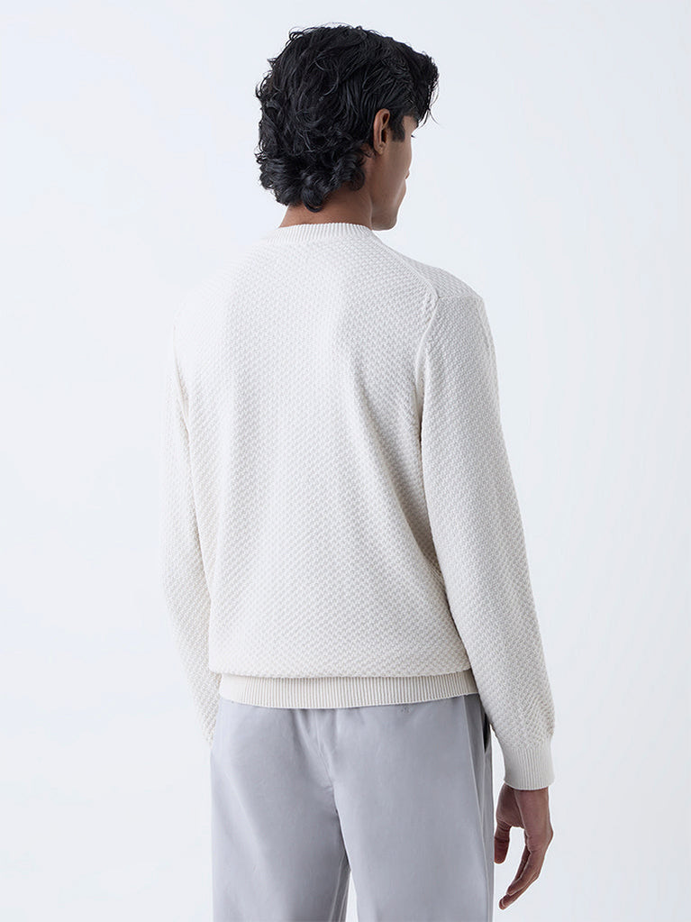 Ascot Cream Knit-Textured Relaxed-Fit Cotton-Blend Sweater
