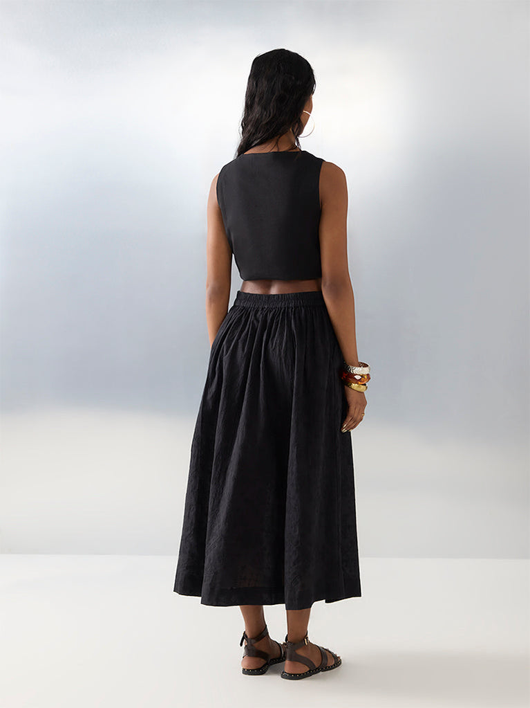 Bombay Paisley Black Embroidered High-Rise Cotton Skirt