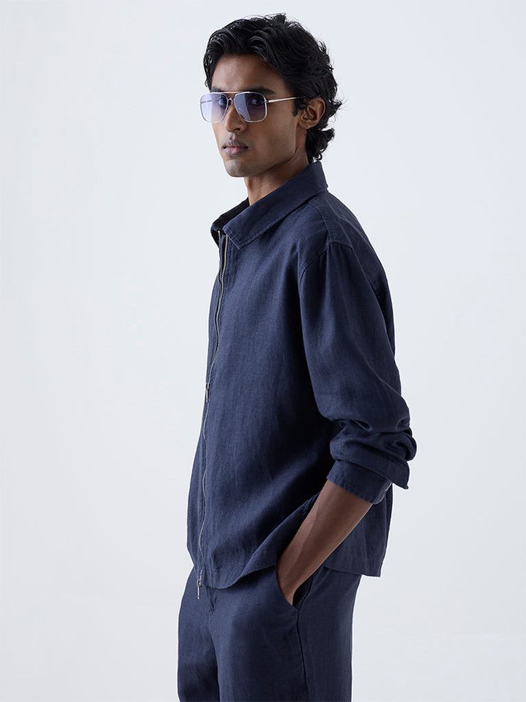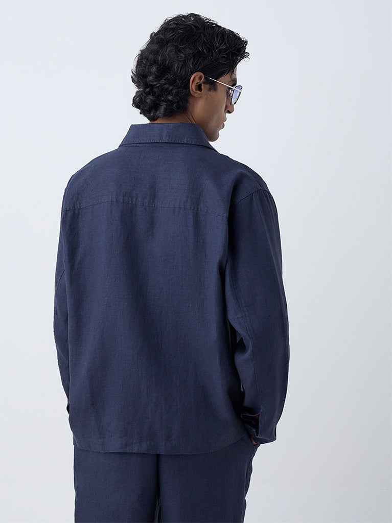 Ascot Indigo Solid Relaxed-Fit Linen Jacket