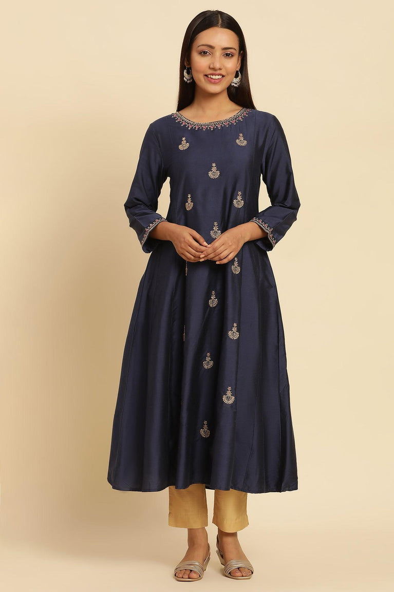Blue Embroidered Thread Work Acrylic Straight Kurta