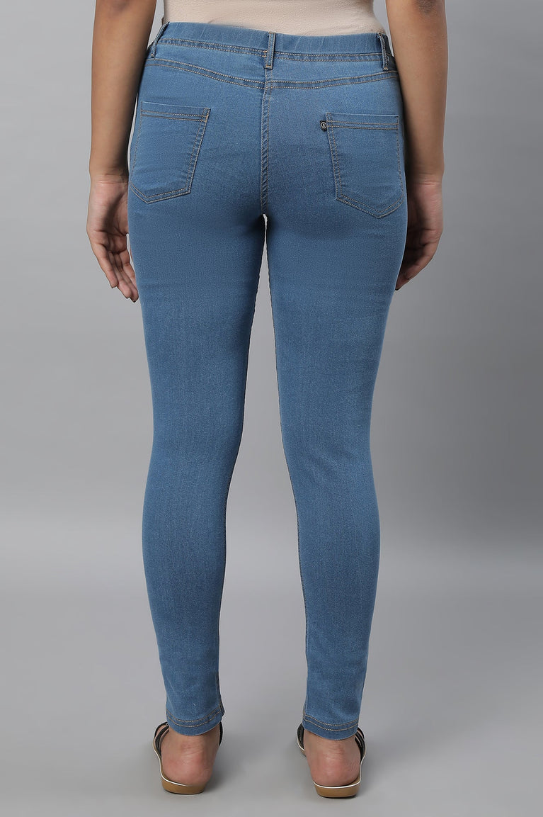 Ice Blue Solid Skinny-fit Denim Jeggings with Slip-On Closure