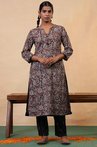 Bring effortless charm to your everyday ethnic wardrobe with this flared kurta in breathable pure cotton. Featuring subtle prints in a rich black hue, this kurta blends traditional elegance with contemporary flair. The flared silhouette offers ease of movement and a flattering fit, making it ideal for long days at work or festive family gatherings. Thoughtfully crafted with fine detailing, it ensures comfort without compromising on style. Whether paired with leggings or palazzos, this kurta for women will elevate your seasonal dressing. It’s a timeless pick for those who love easy elegance in pure cotton.