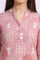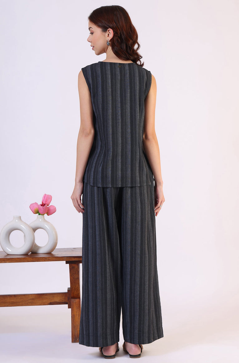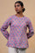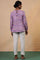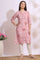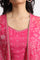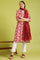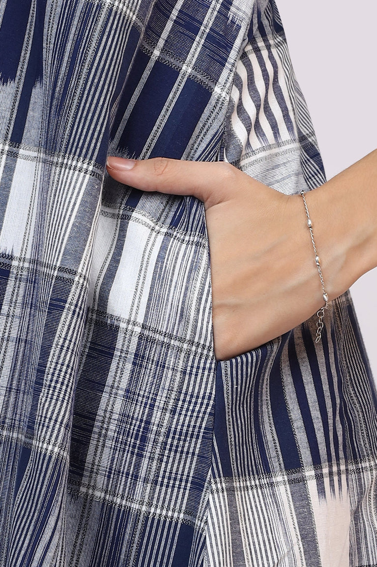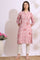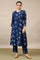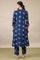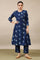 An everyday wardrobe essential, this straight kurta features meticulous handblock printing. It includes striped detailing along the sides and sleeves, complemented by a dori tie-up at the front and delicate sequins along the neckline.