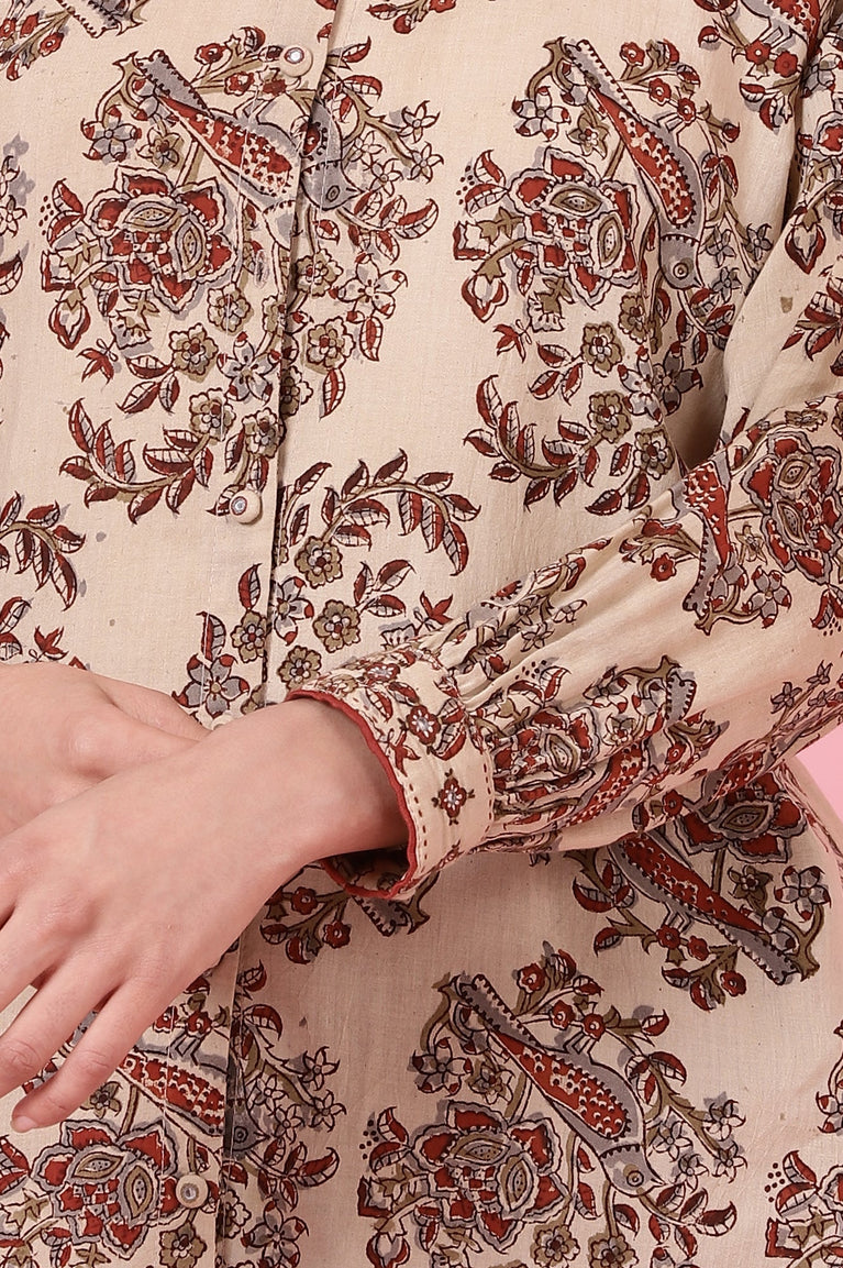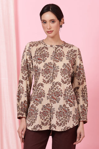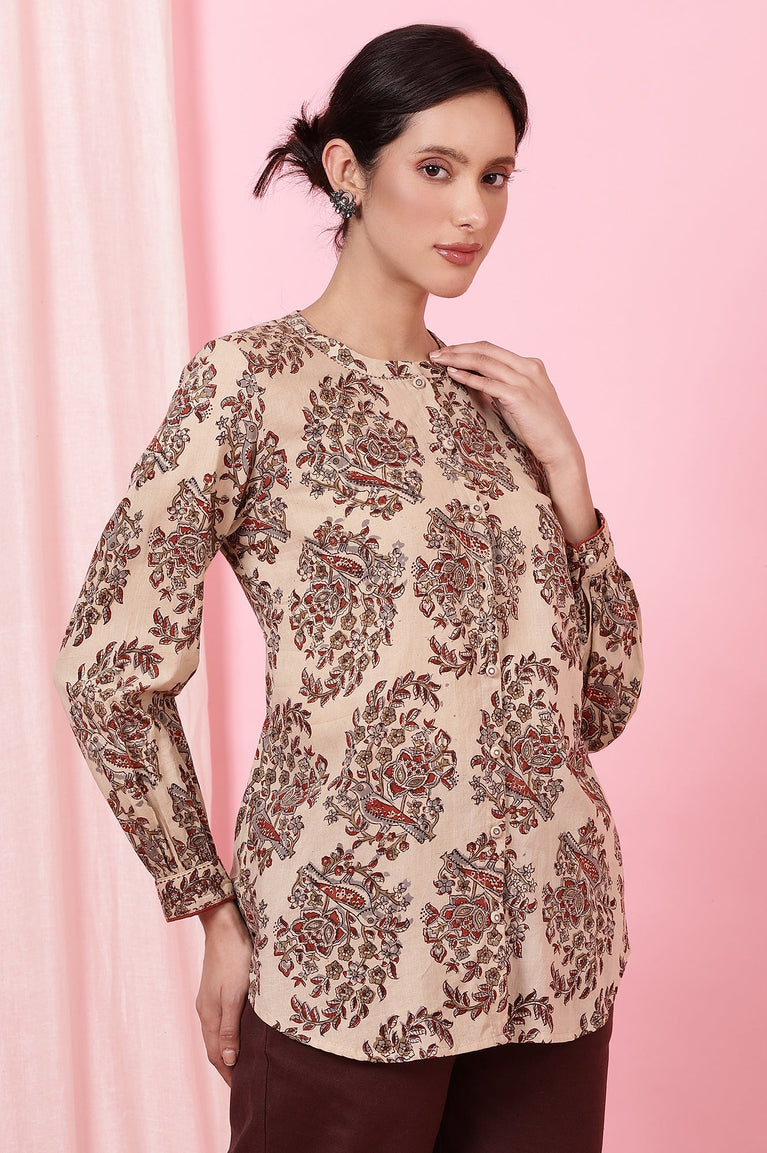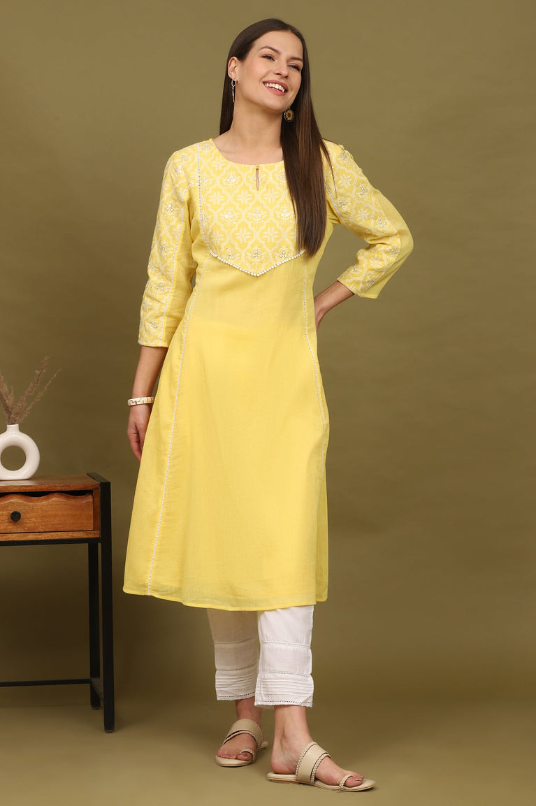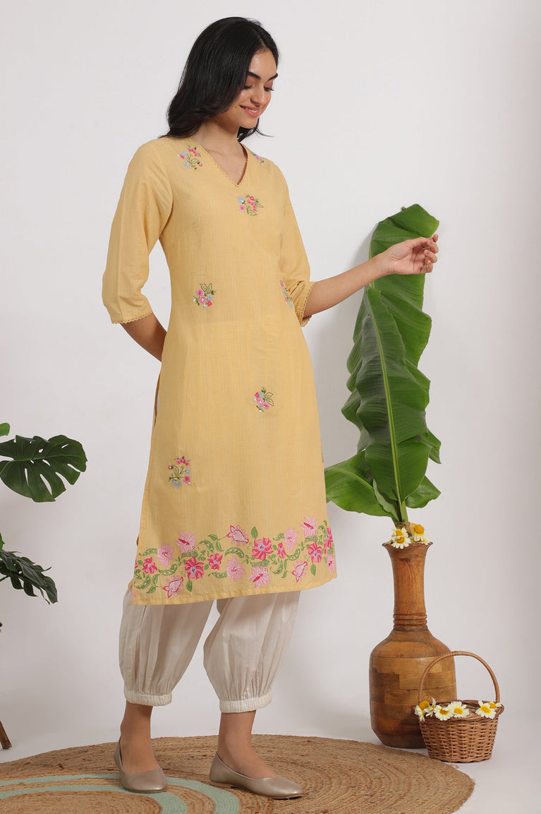 A versatile style essential, this beige straight kurta in cotton opens at the front for effortless layering. Its clean neckline and side slits add ease, while the muted hue makes it a perfect canvas for multiple looks—dress it up with palazzos or down with jeans.