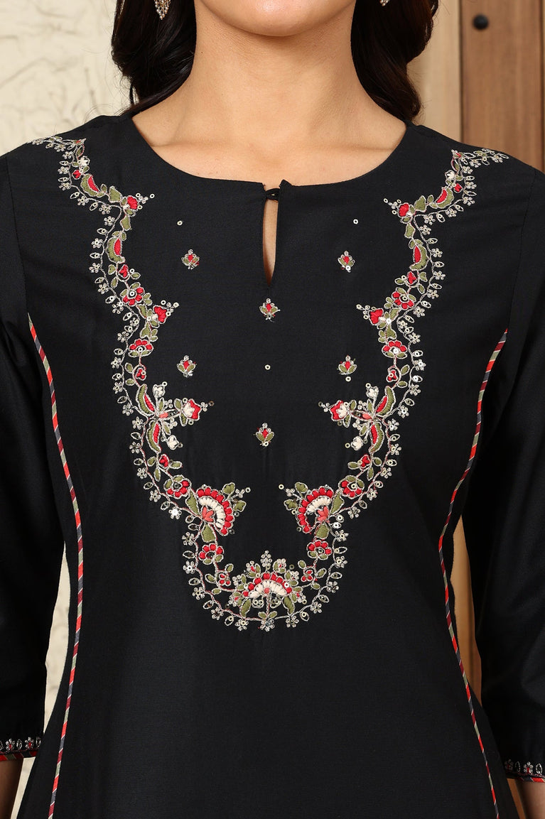 Black Solid Dori Embroidered Festive Straight Kurta