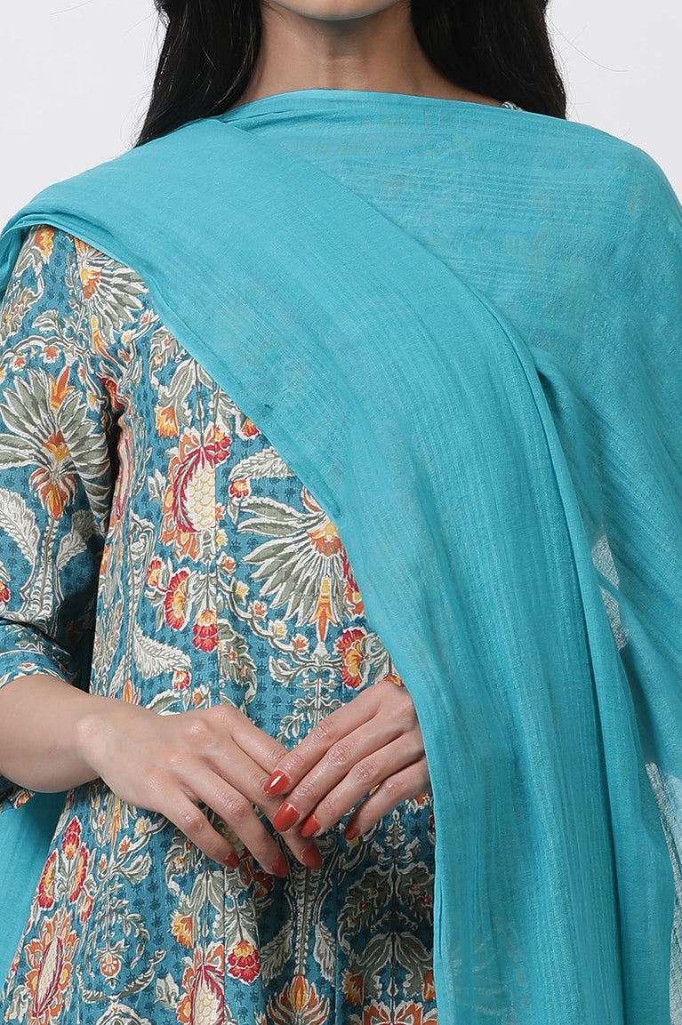 Aqua Blue Solid Dupatta