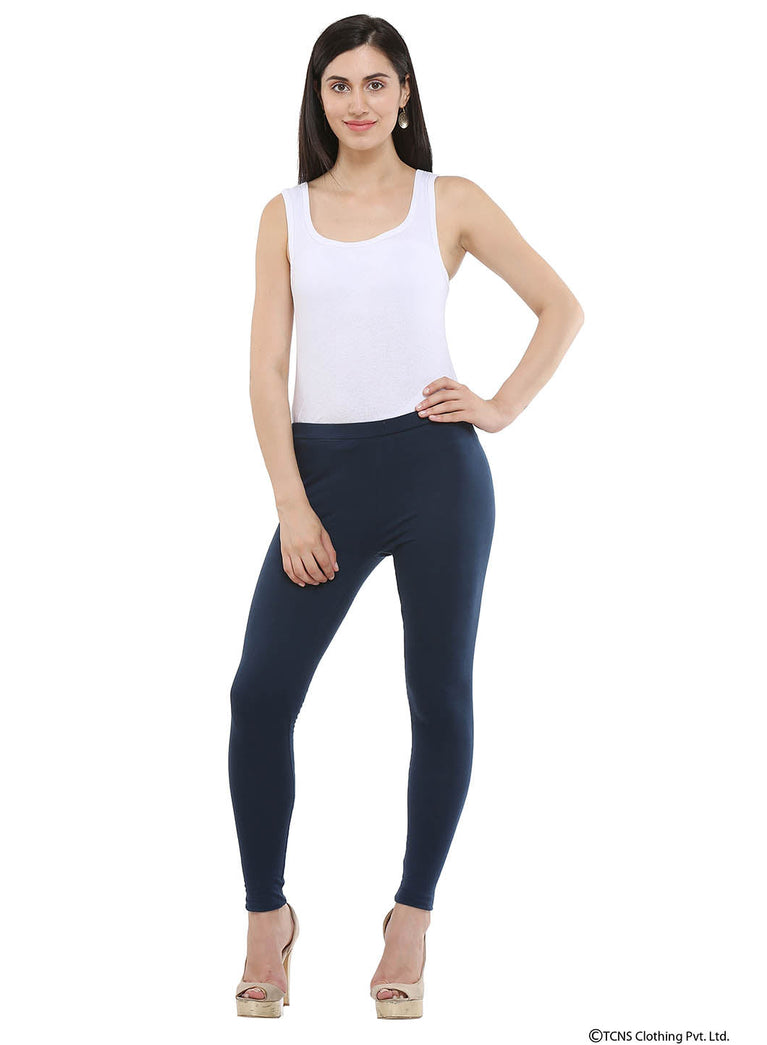 Crafted for movement and style, these navy blue yoga tights are designed to keep you comfortable during your active days. Featuring a sleek skinny fit and a soft knit fabric, they offer a flattering silhouette while ensuring ease of motion. The elasticated waistband provides a secure fit, and the two front pockets add a touch of practicality. Perfect for casual outings or yoga sessions, these tights pair effortlessly with tops, kurtas, or sneakers for a versatile look.