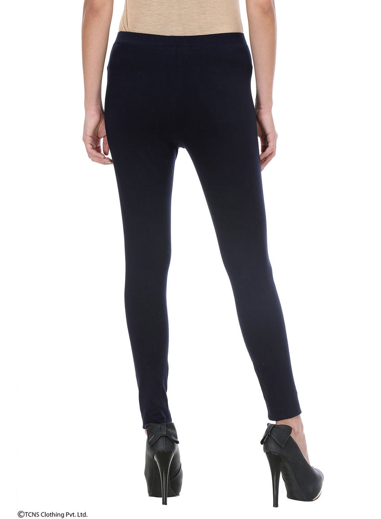 Blue Solid Skinny-fit Knit Tights with Elasticated Waistband
