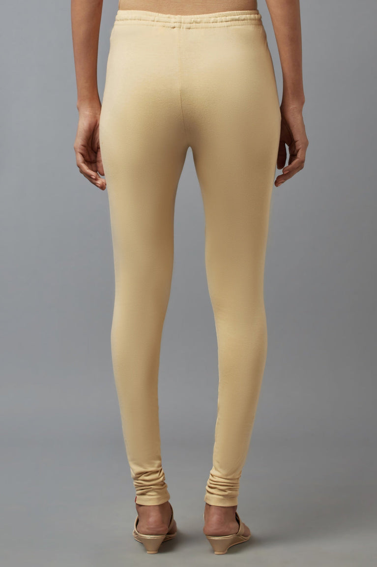 Beige Solid Skinny Fit Cotton Tights With Elasticated Waist