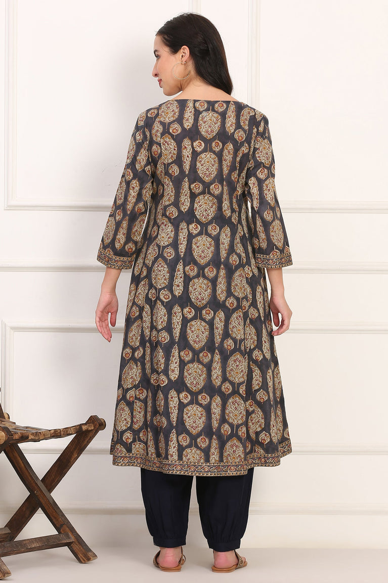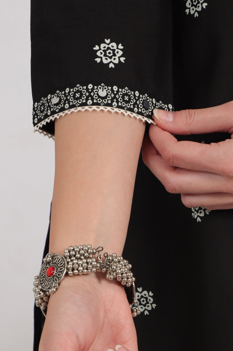 Black Printed Pure Cotton Flared Kurta