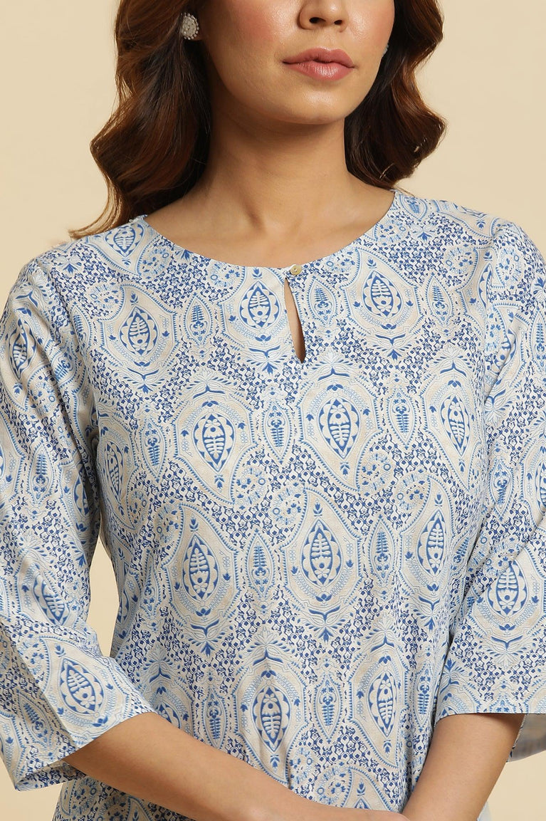 Discover comfort and style with this casual women's kurta, designed for everyday elegance. Made from 100% pure cotton, this blue kurta offers unparalleled breathability and softness against your skin. The woven construction technique ensures durability, while the straight cut flatters various body types. Featuring a keyhole neckline, this kurta adds a touch of uniqueness to your casual wear collection. The three-quarter sleeves provide versatility for different seasons and occasions. Adorned with a charming print, this ethnic piece strikes the perfect balance between traditional and contemporary fashion. Whether you're running errands or meeting friends for lunch, this kurta is your go-to choice for a relaxed yet put-together look. Its versatility allows for easy styling with a range of bottoms and accessories, making it a valuable addition to your wardrobe. Embrace the comfort of cotton and the beauty of ethnic design with this delightful casual kurta.