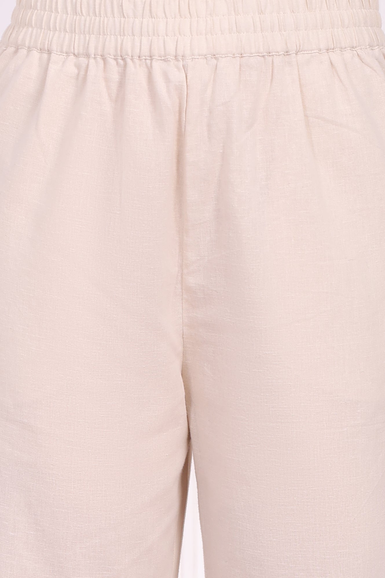 A portrait of modern grace, this Natural Ecru kurta set for women is a study in sophisticated contrasts. The sleeveless A-line kurta glides over the frame, offering a silhouette that’s both flattering and supremely comfortable for all-day wear. Its entire front panel is a canvas for intricate floral embroidery, rendered in a bold black thread that stands out against the serene base, creating a stunning visual texture that feels luxurious to the touch. This beautiful ethnic co-ord set is perfect for those who appreciate detailed craftsmanship. The kurta features an elegant V-neckline, which is delicately finished with a fine lace trim for an added touch of femininity and charm. High side slits on the straight hemline ensure graceful movement, while the solid back provides a moment of chic simplicity. Designed for effortless style, this kurti set is a masterpiece of contemporary ethnic wear. The ensemble includes a pair of minimalist straight pants, crafted from the same comfortable fabric for a cohesive look. These pants come with an elasticated waistband ensuring a perfect, flexible fit and feature a handy side pocket for your essentials. This embroidered kurta pant set is ideal for brunches, festive gatherings, or any day you choose to celebrate your personal style. It’s a timeless two-piece ensemble you'll treasure.