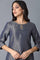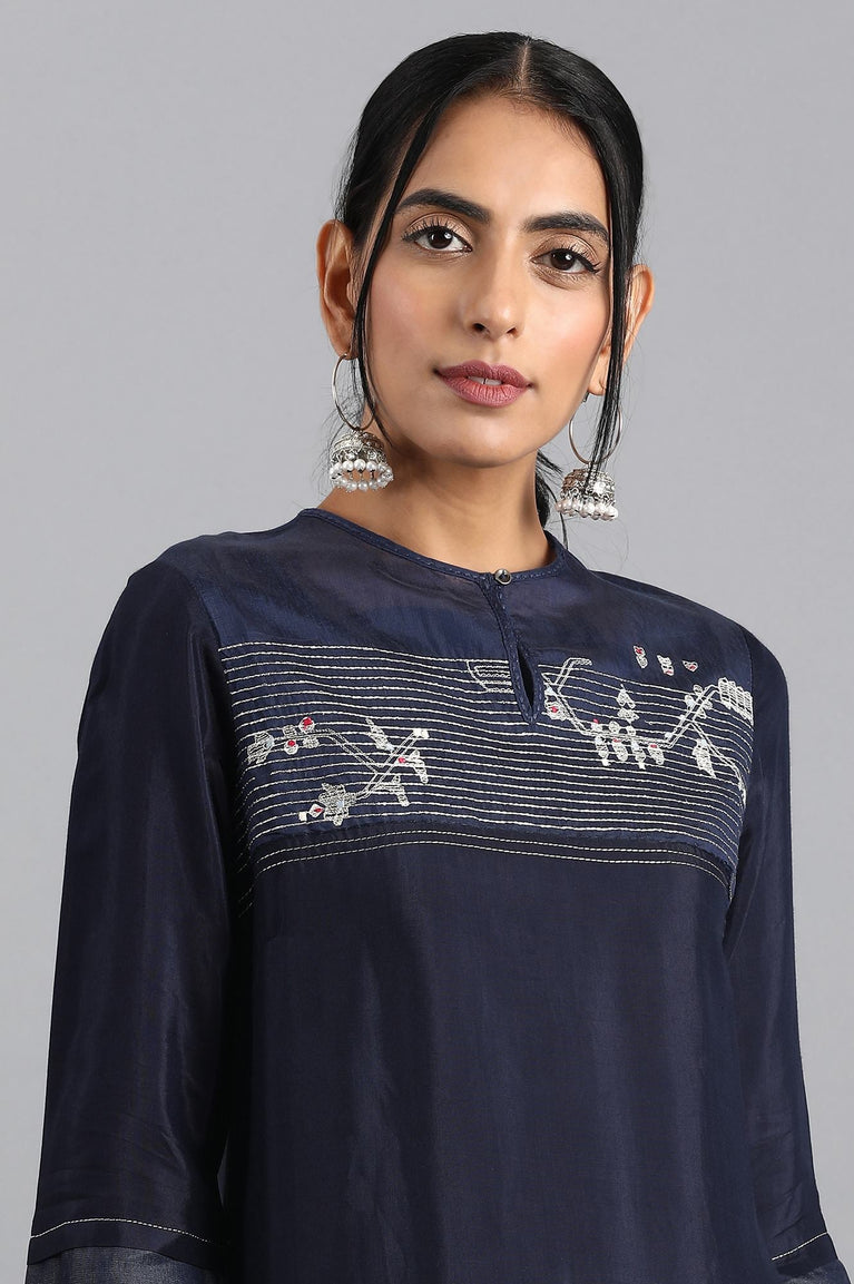 Get Styled For An Elevated Look In This Pretty Blue Embroidered kurta. It Has Gathered Sleeves And Round Neck.