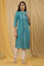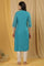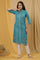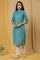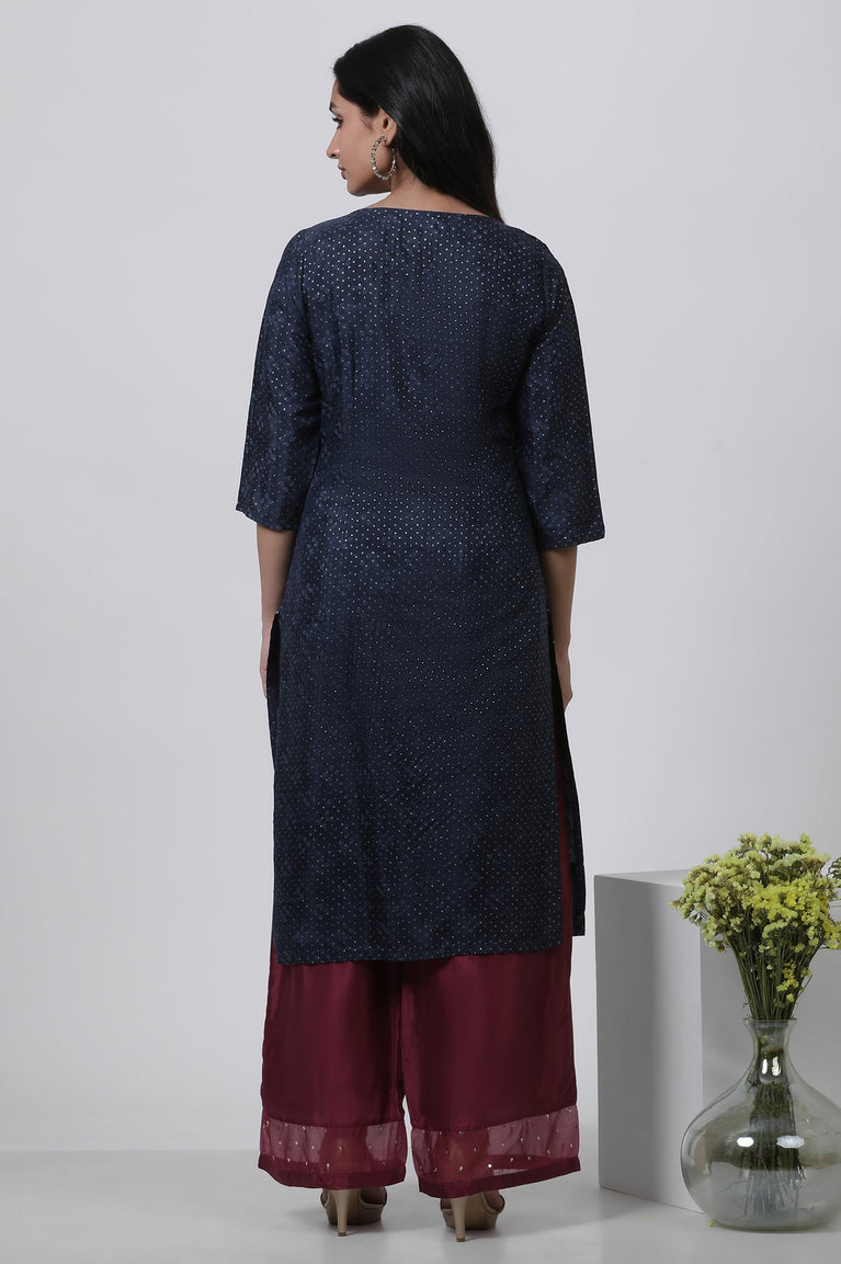 Get Ready For A Stunning Festive Look In This Pretty Blue Glitter Printed Kurta And Parallel Pants Set. The Kurta Has Round Neck And Mock Layer. It Is Paired With Matching Printed Parallel Pants.