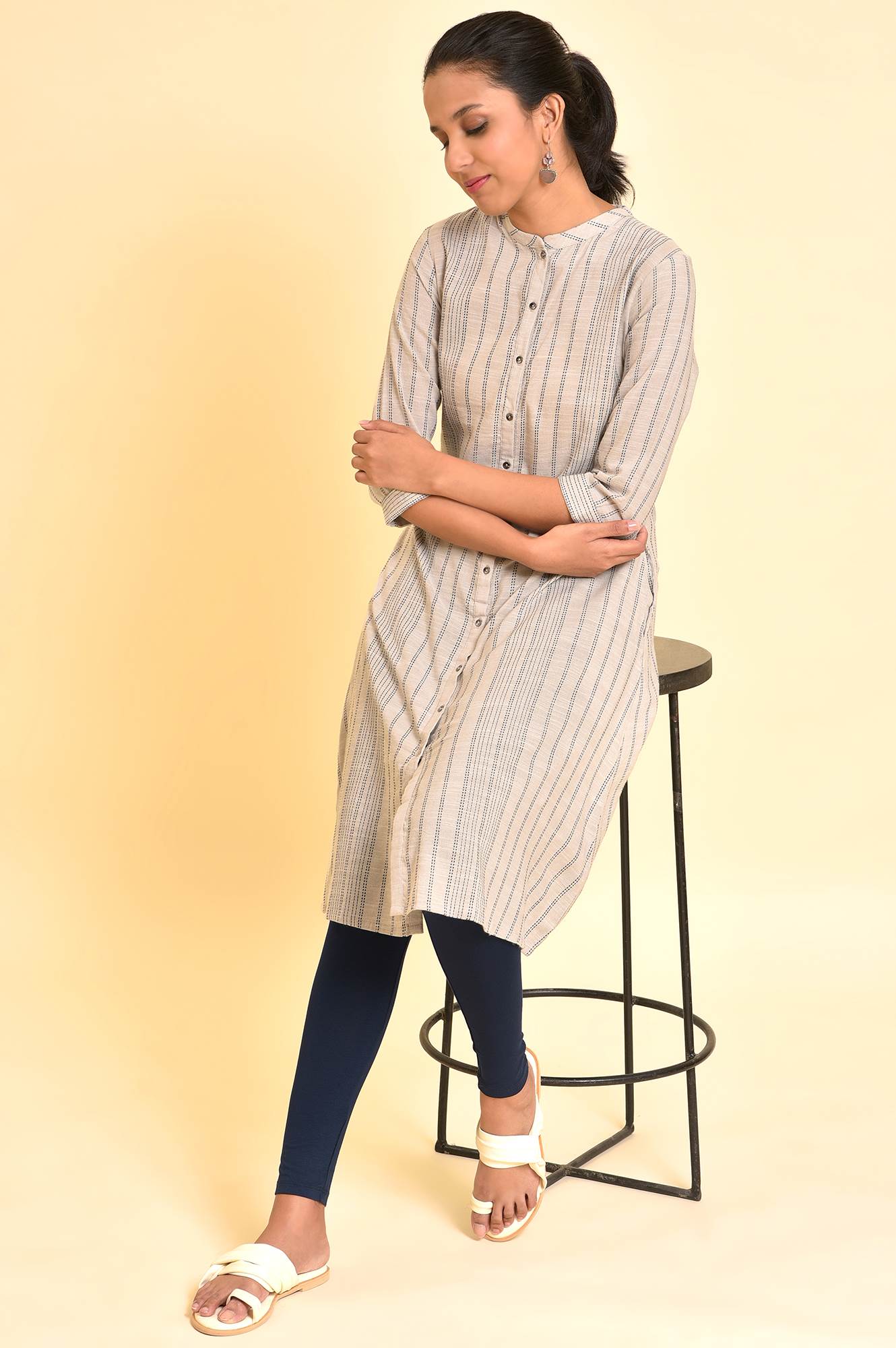 Midnight Blue Mid-Rise Knitted Tights In Viscose Lycra.