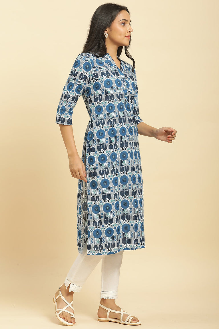 Blue Mandarin Neck Printed kurta