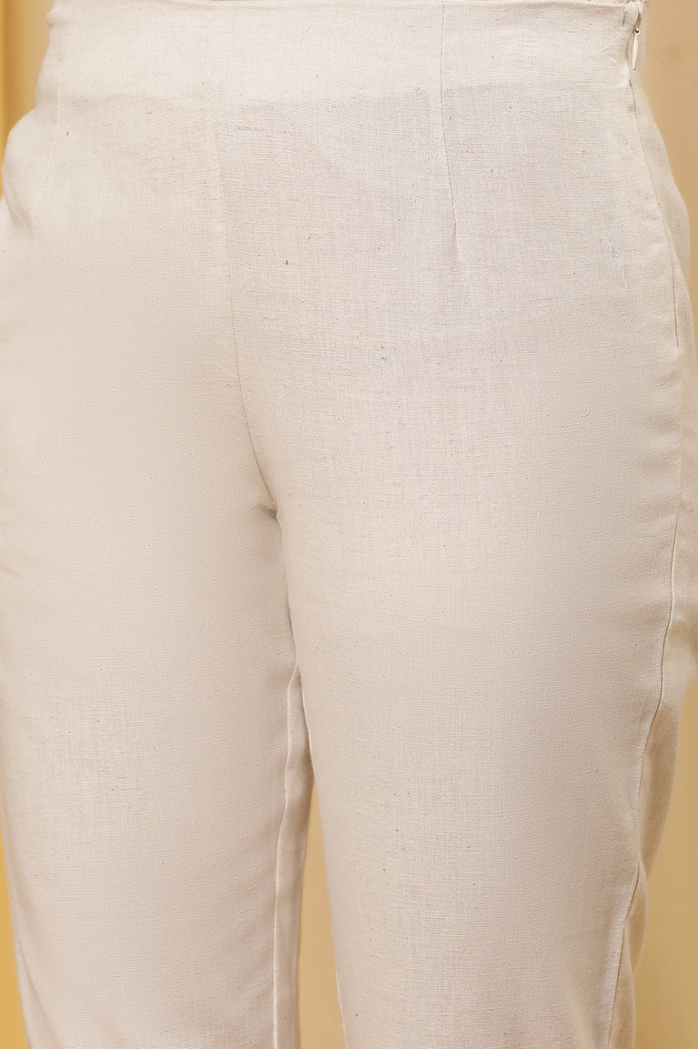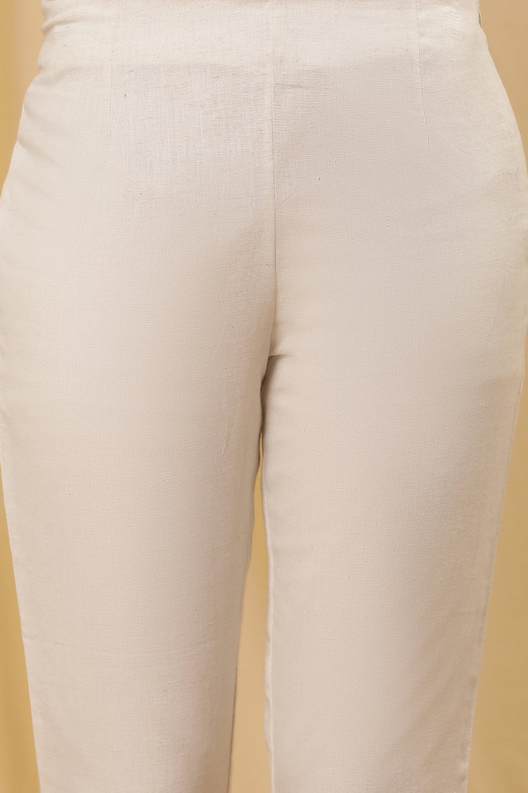 Off-White Embroidered Lace Trim Straight Cotton Kurta with Flared Pant and Dupatta Set
