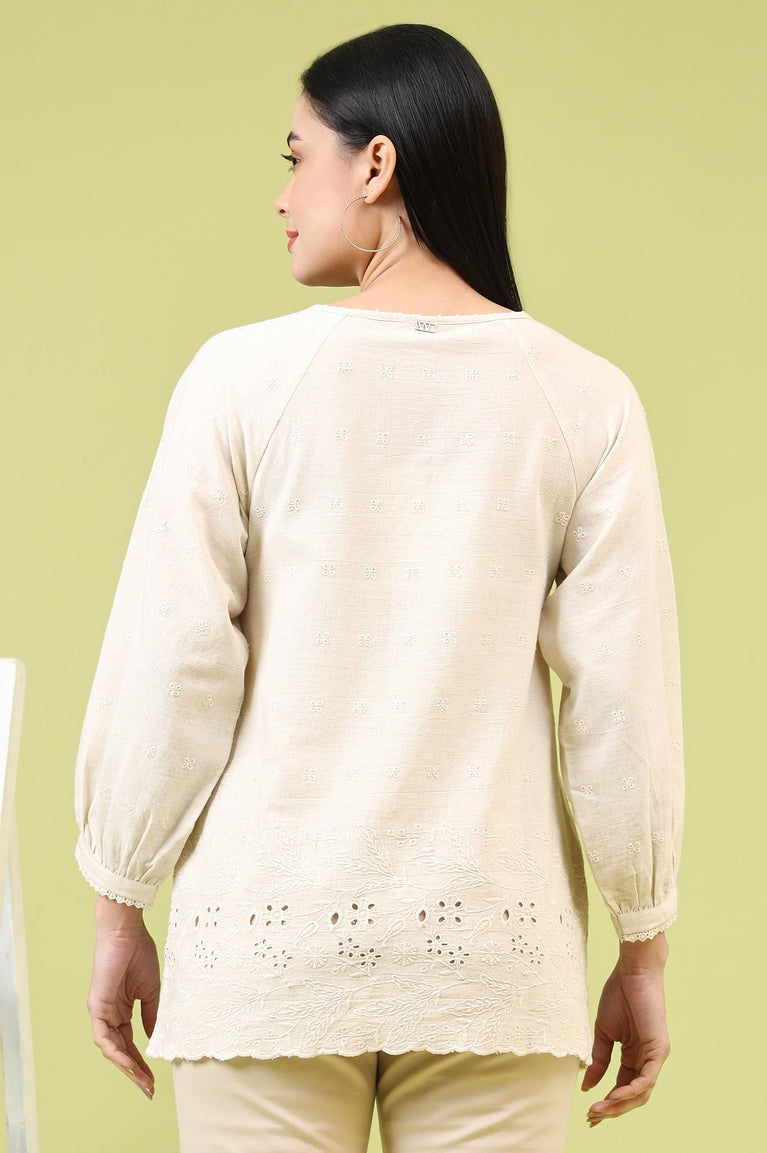 Off-Whie Schiffli Embroidered Fusion Top with Lace Detail