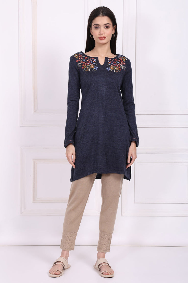 A tapestry of tradition woven into a modern silhouette, this stunning printed kurti for women is a celebration of intricate design. The rich, multi-hued geometric pattern draws inspiration from timeless block prints, creating a visual that's both classic and captivating. It flows in a graceful A-line shape that flatters while it moves, offering a silhouette that feels effortlessly elegant. The design features a sophisticated round neckline detailed with a chic center slit, which is framed by delicate, sparkling embellishments for a hint of festive glamour. You'll love the artistry on the three-quarter sleeves, which are finished with contrasting, embellished cuffs that serve as a beautiful focal point. Crafted from a fabric with a subtle luster that drapes beautifully, this opaque tunic promises all-day comfort without compromising on style. Its versatile calf-length hemline is complemented by traditional side slits, ensuring graceful movement. This printed A-line kurti is the perfect apparel for creating a memorable ethnic look, whether you're heading to a family gathering or a casual day out.