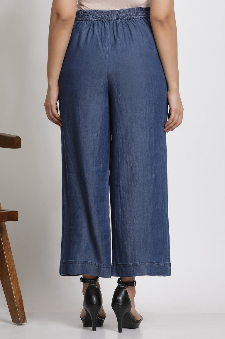 Black Solid Boot Cut Palazzo With Elasticated Waist