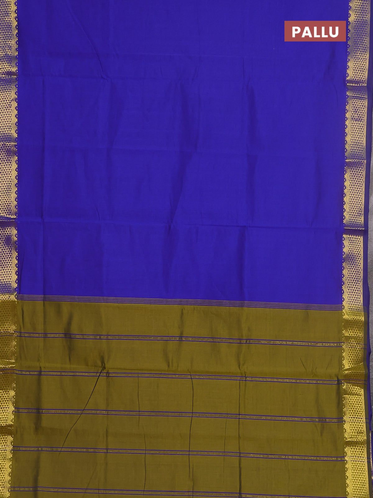 10 yards Poly cotton saree blue and mehendi green with plain body and zari woven border