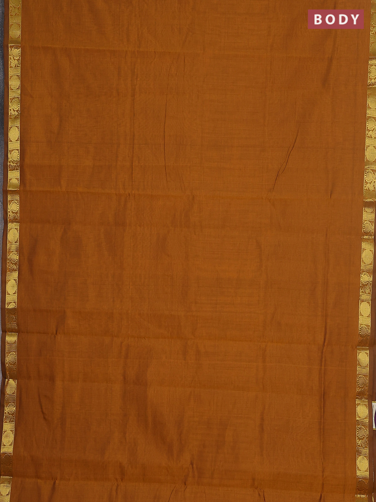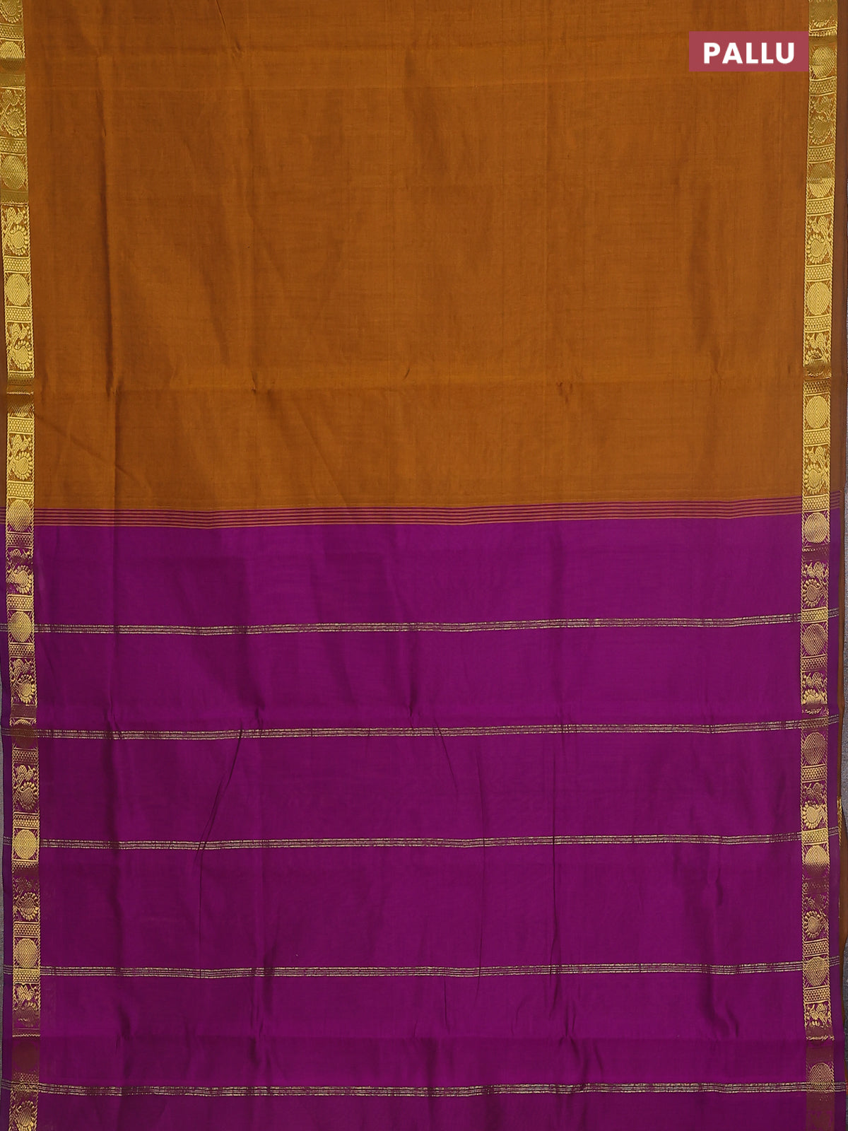 10 yards Poly cotton saree dark mustard and purple with plain body and zari woven border