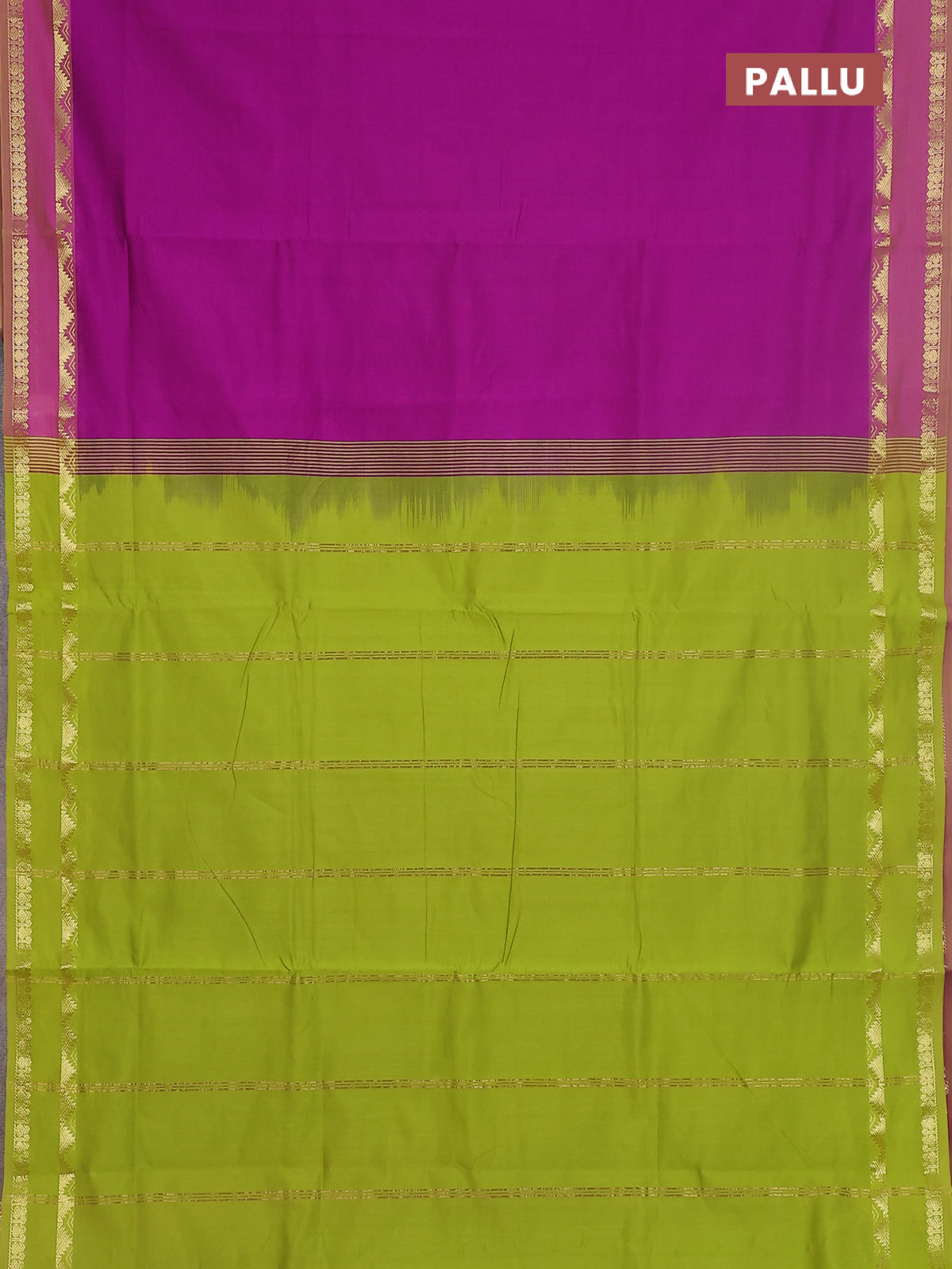 10 yards Poly cotton saree purple and light green with plain body and rettapet zari woven border