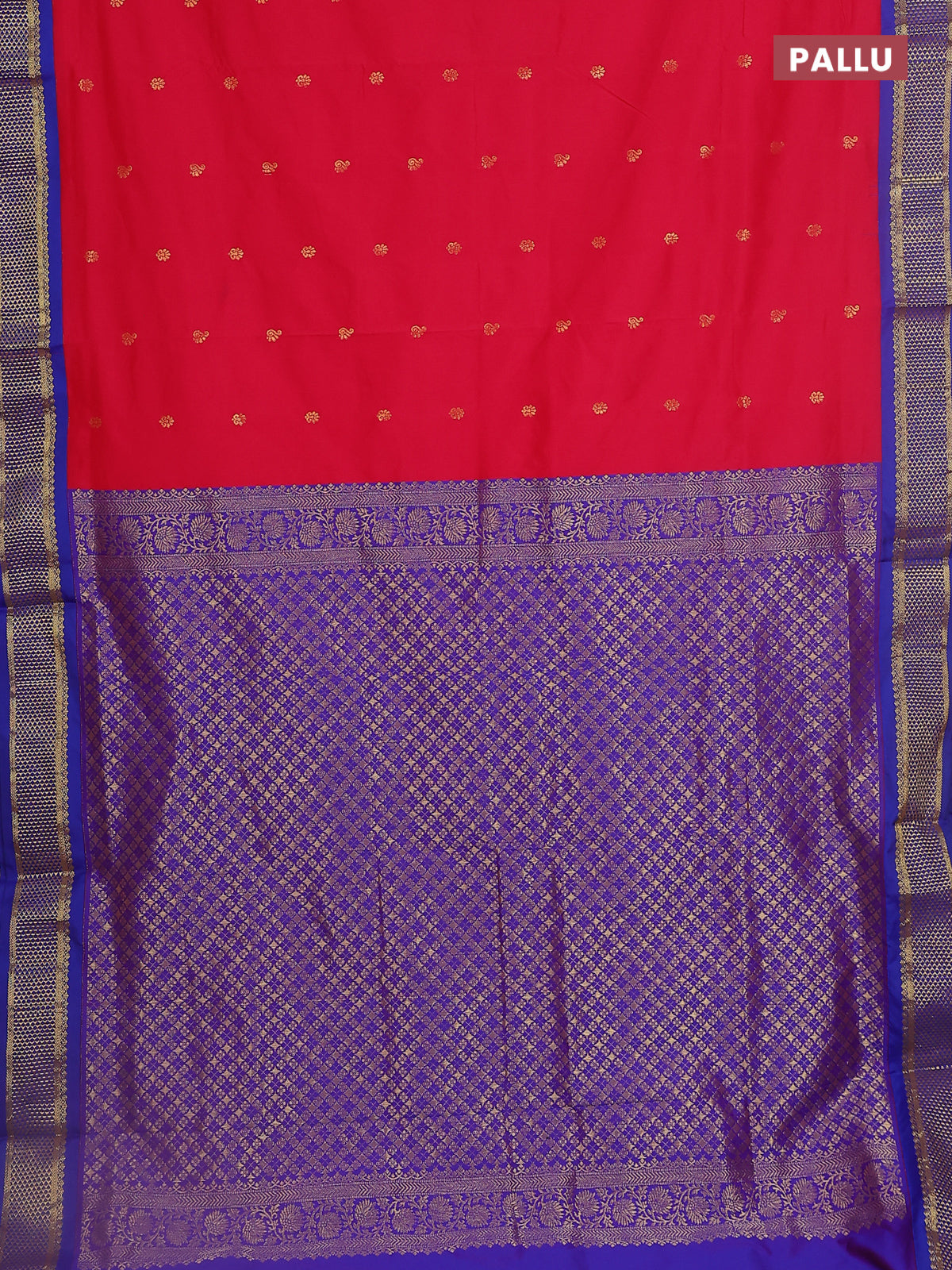 10 yards salem silk saree reddish pink and blue with zari woven buttas and zari woven border