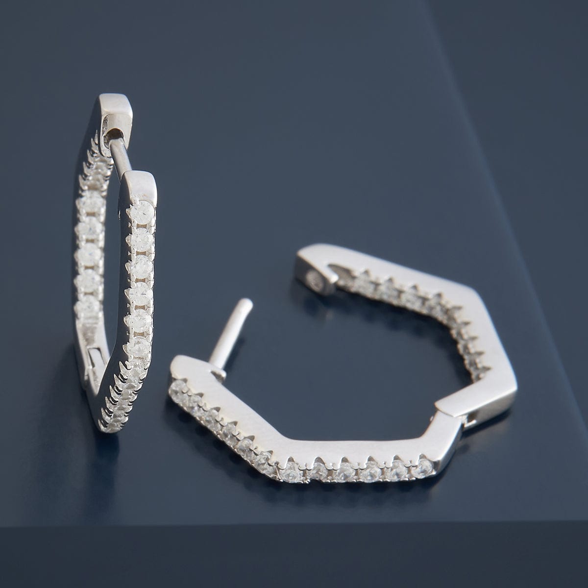 Keep it classic with a white t-shirt and blue denims, perfectly complemented by these chic 92.5 silver earrings. Embellished with sparkling white zircon stones, they’re available in gold, rose gold, or rhodium polish. These versatile earrings add a touch of elegance to your everyday look while exuding effortless charm.
