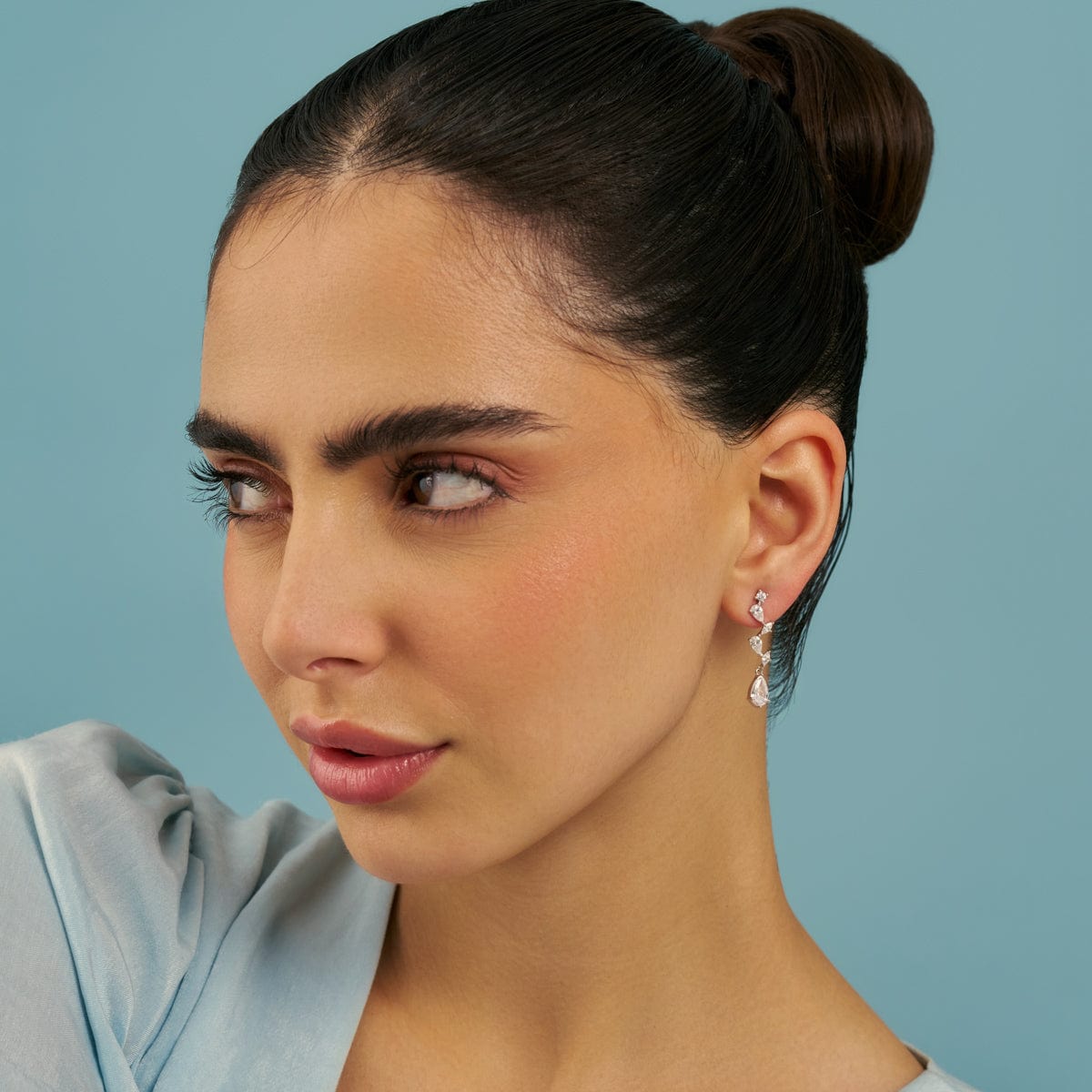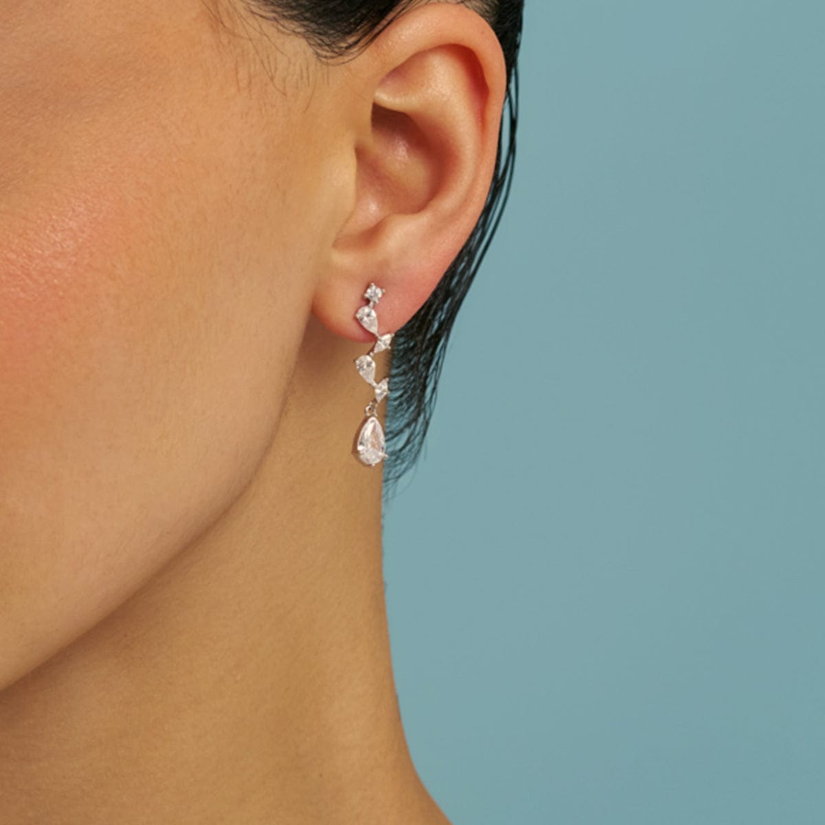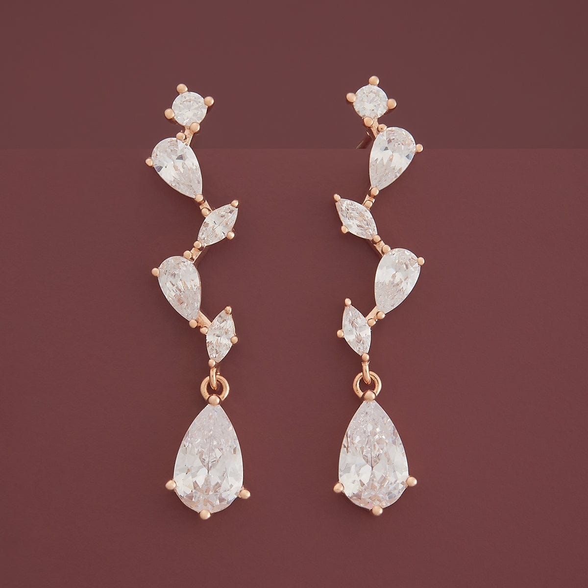 Flaunt shiny zircon stones with these 92.5 silver earrings. Style the white-stone studded earrings with a ruffled-sleeve dress, headband and strappy wedges. The hanging earrings feature a push-back closure for added safety and convenience. They’re available in multiple polish options including gold, rhodium and rose gold.