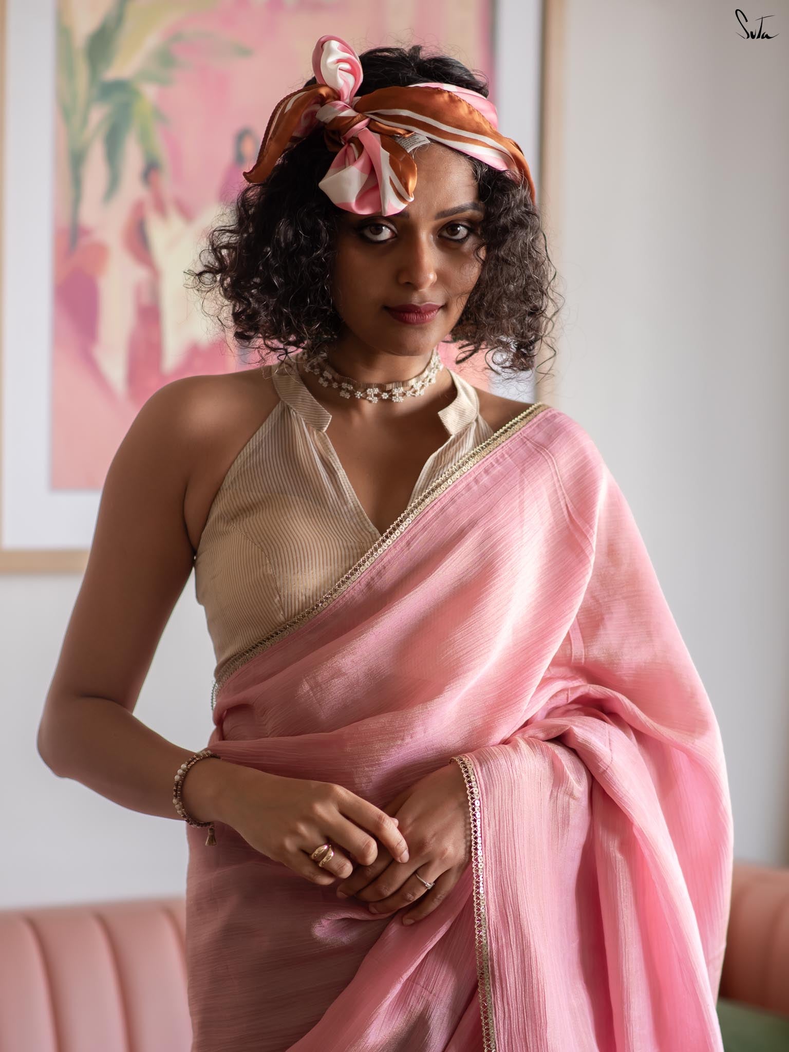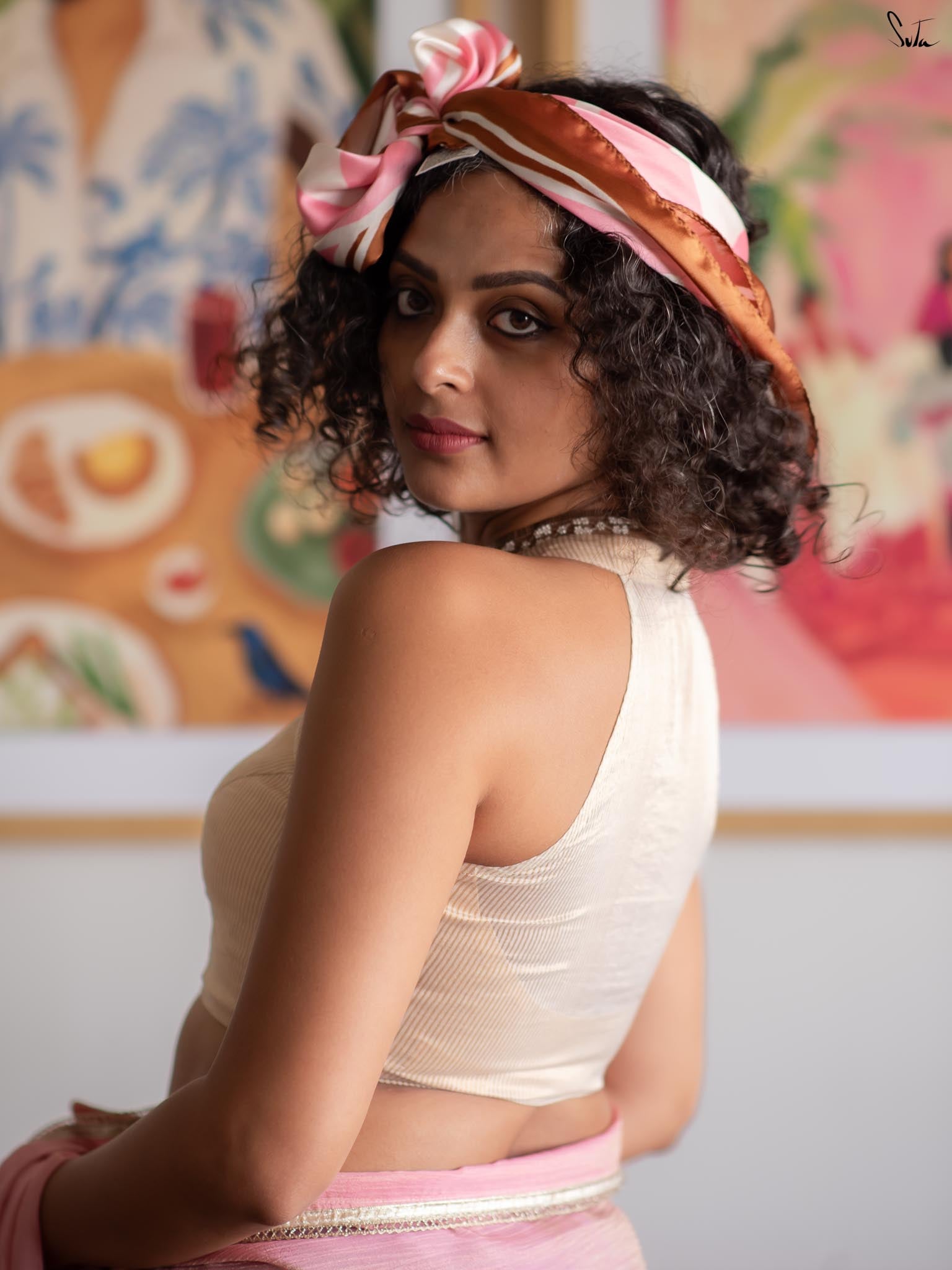 Light, refined and quietly radiant, this blouse adds a touch of effortless sophistication to any drape.