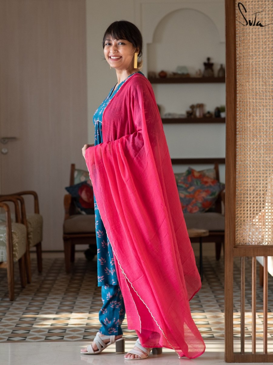 Fabric : Kurta / Pant - Modal Viscose ; Dupatta - Mul Cotton