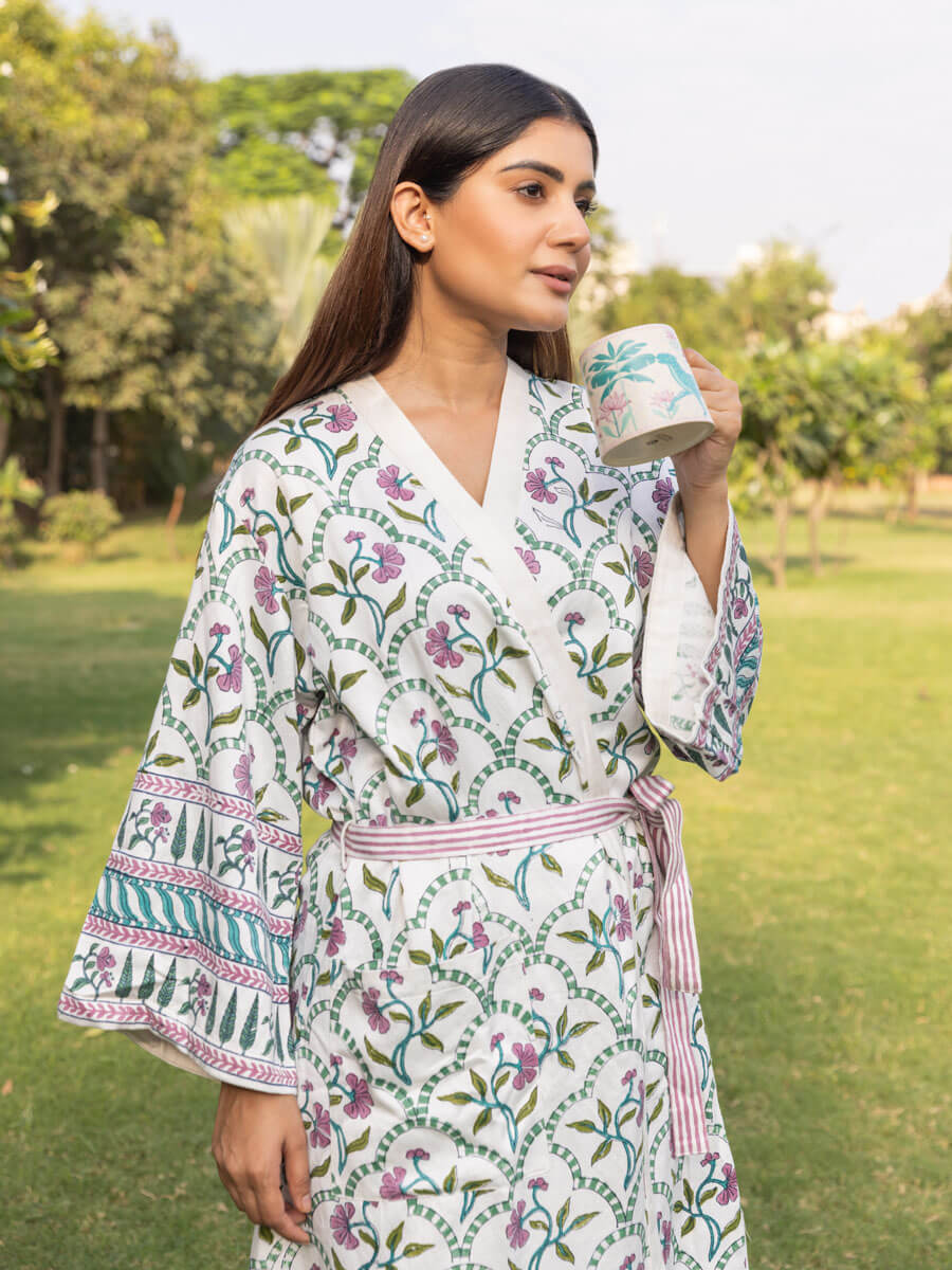 Anokhi Block Printed Luxury Cotton Bath Robe