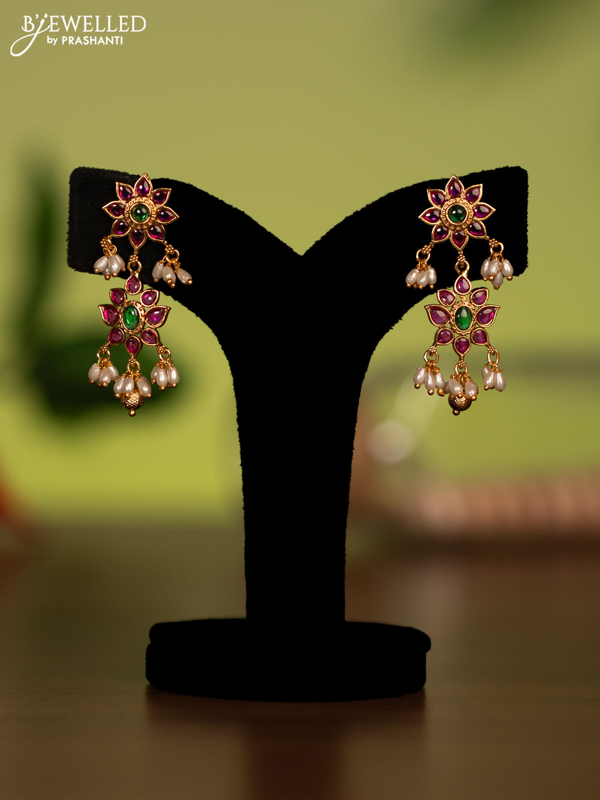 Antique attigai necklace with kemp stones and pearl & golden beads hanging