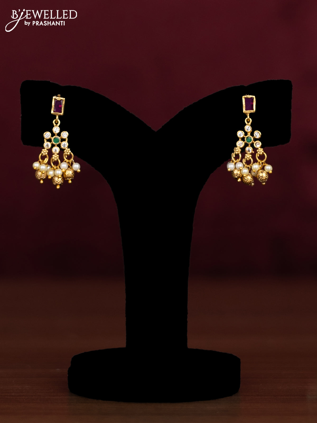 Antique guttapusalu necklace floral design with kemp & cz stones and pearl hangings