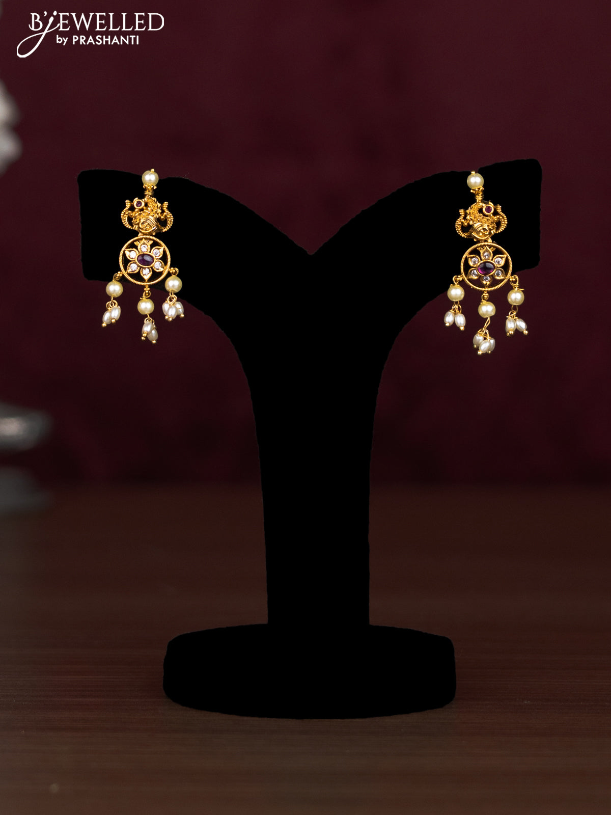 Antique guttapusalu necklace peacock design with kemp & cz stones and pearl hangings
