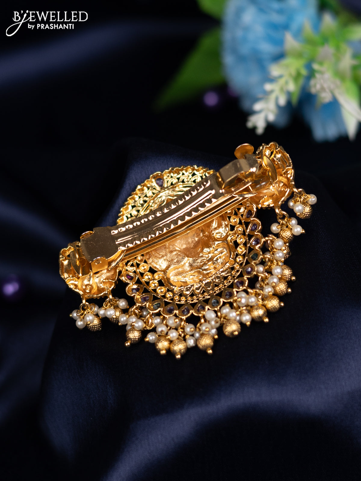 Antique hair clip big size lakshmi design with kemp stones and pearl hangings