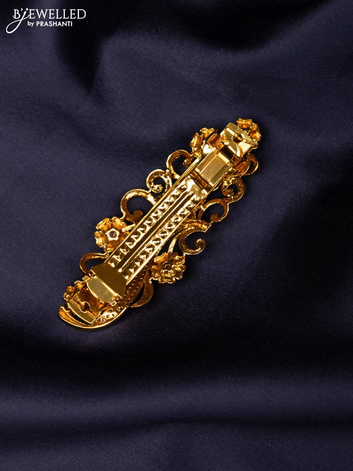 Antique hair clip medium size floral design with kemp and cz stones